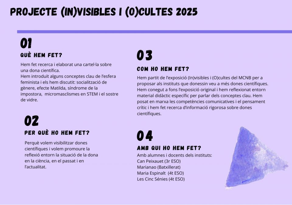 16 de desembre de 2025Ja hem realitzat la IV edició del projecte escolar (in)visibles i (o)cultes, que pretén visibilitzar a les dones científiques que existeixen i han existit al llarg de la història!